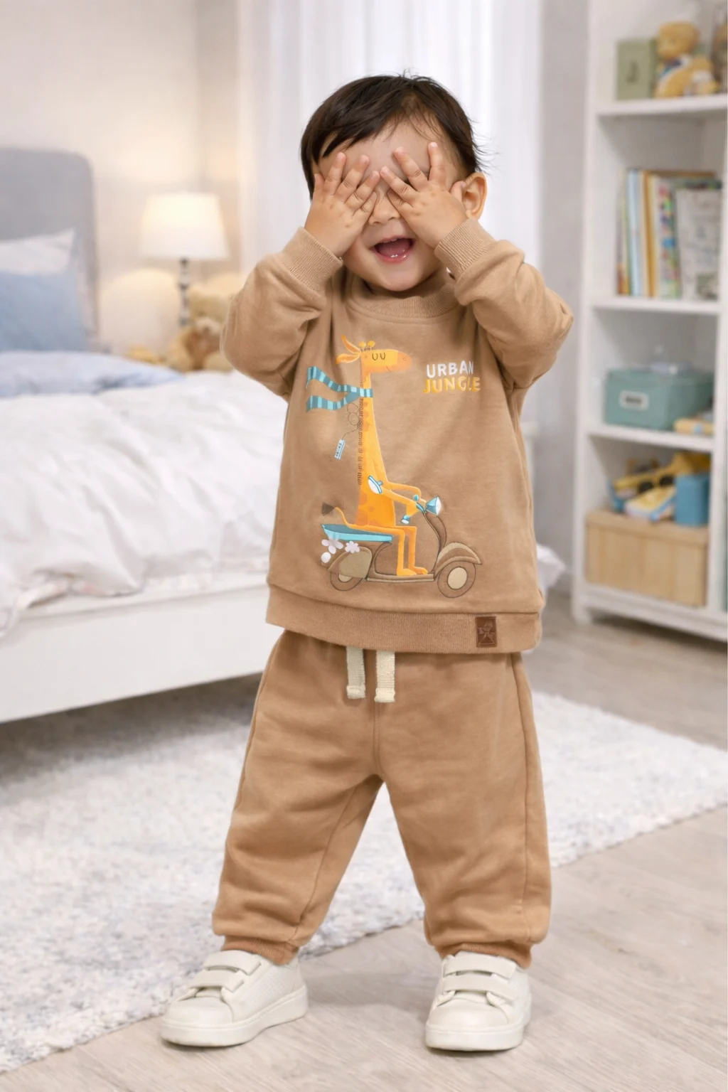 بلوز شلوار پاییزه و زمستانی طرح زرافه موتور سوار